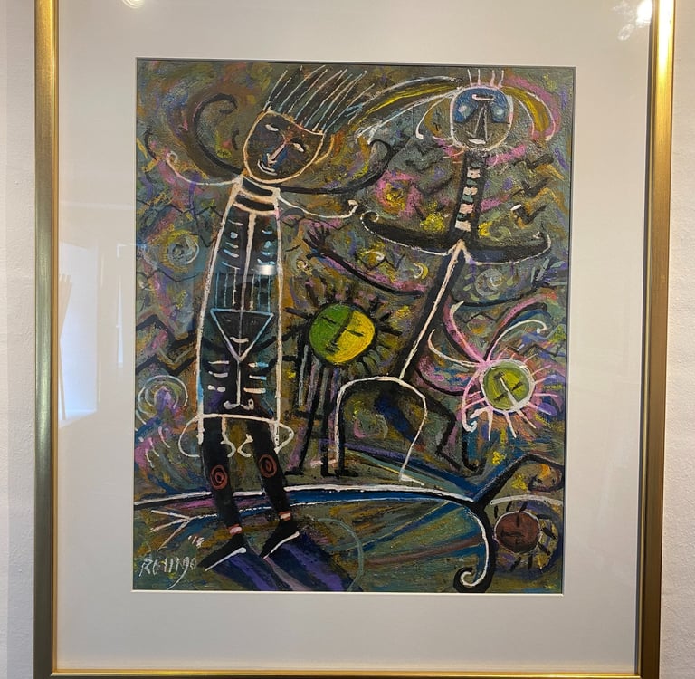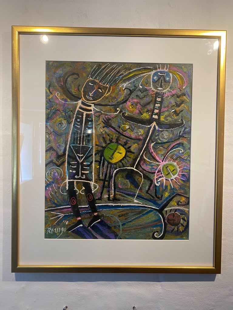 Alle ROMGO malerier herunder er 60 x 75 / Originaler. Pris 5.900,- ( indrammet )